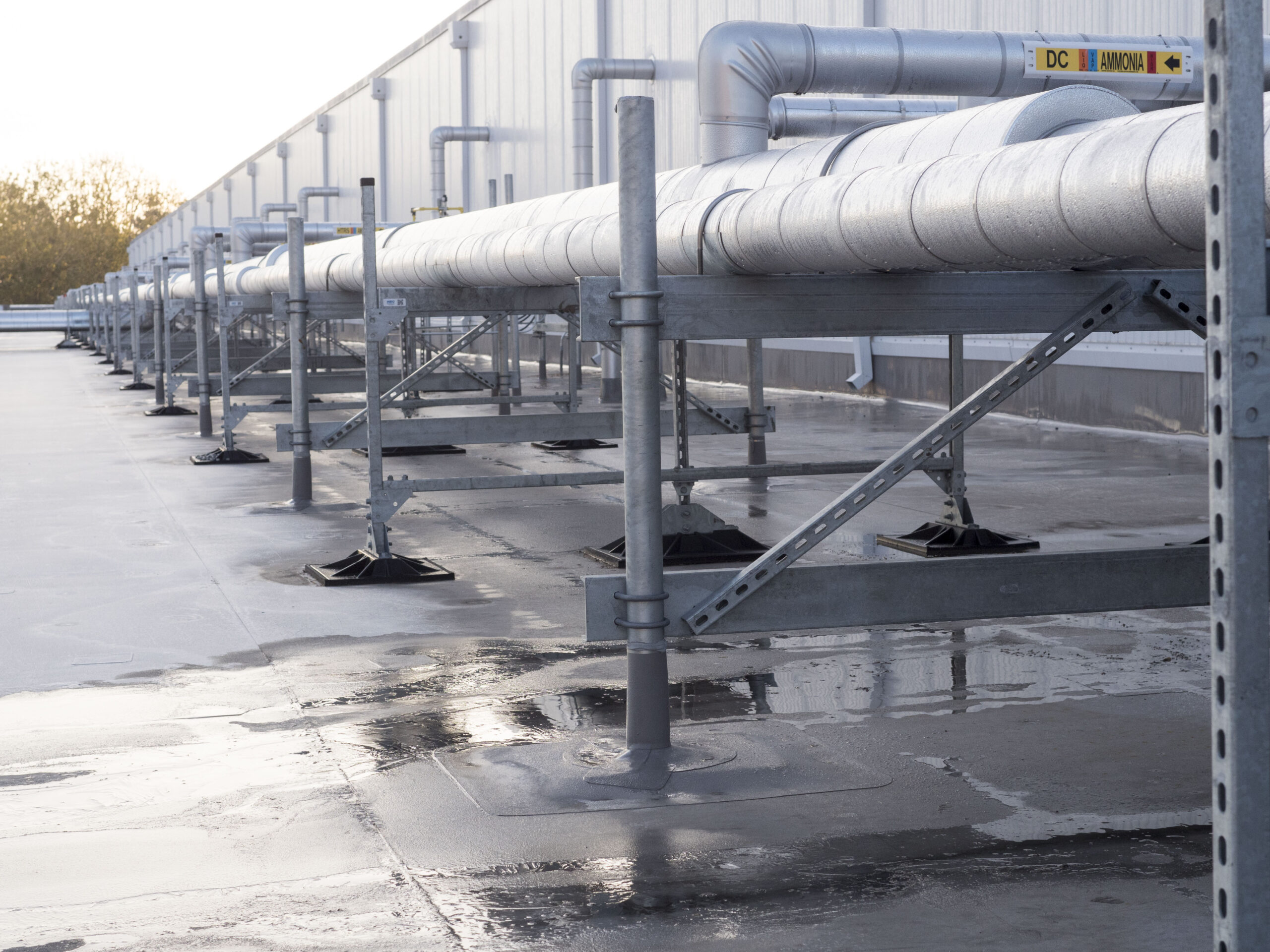This MIRO condenser stand is designed to support rooftop condensers and other mechanical units. The bases can be attached to the structure to prevent wind & seismic damage to the equipment.